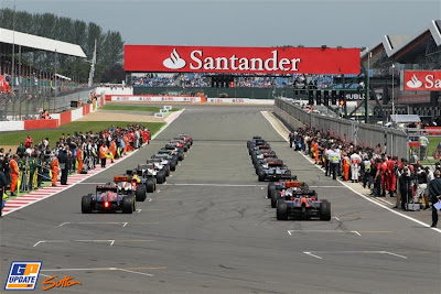 Ao contrário dos outros dois dias, de uma forma algo surpreendente, o mau tempo hoje em Silverstone decidiu dar tréguas, e nas mentes das pessoas, era o que exactamente todos pediam para que tivessem uma boa corrida no centro de Inglaterra, especialmente os nativos, que já andam fartos de ter dias cheios de chuva, quando queriam era ver céu azul e receber um pouco do calor que o resto do Norte da Europa desejava, mas que não estava a ter nas suas devidas porpoções.